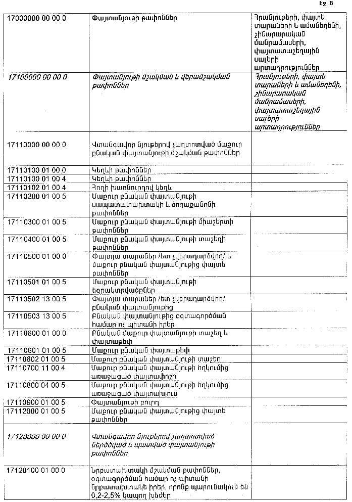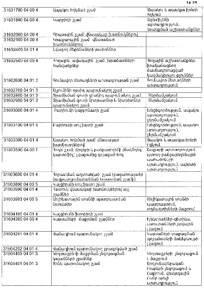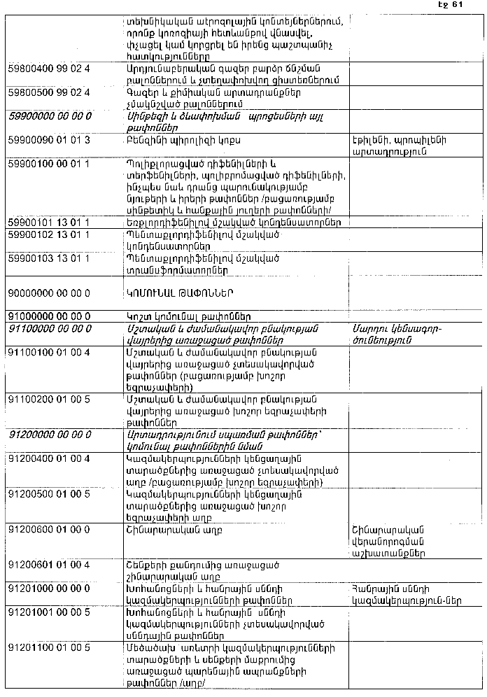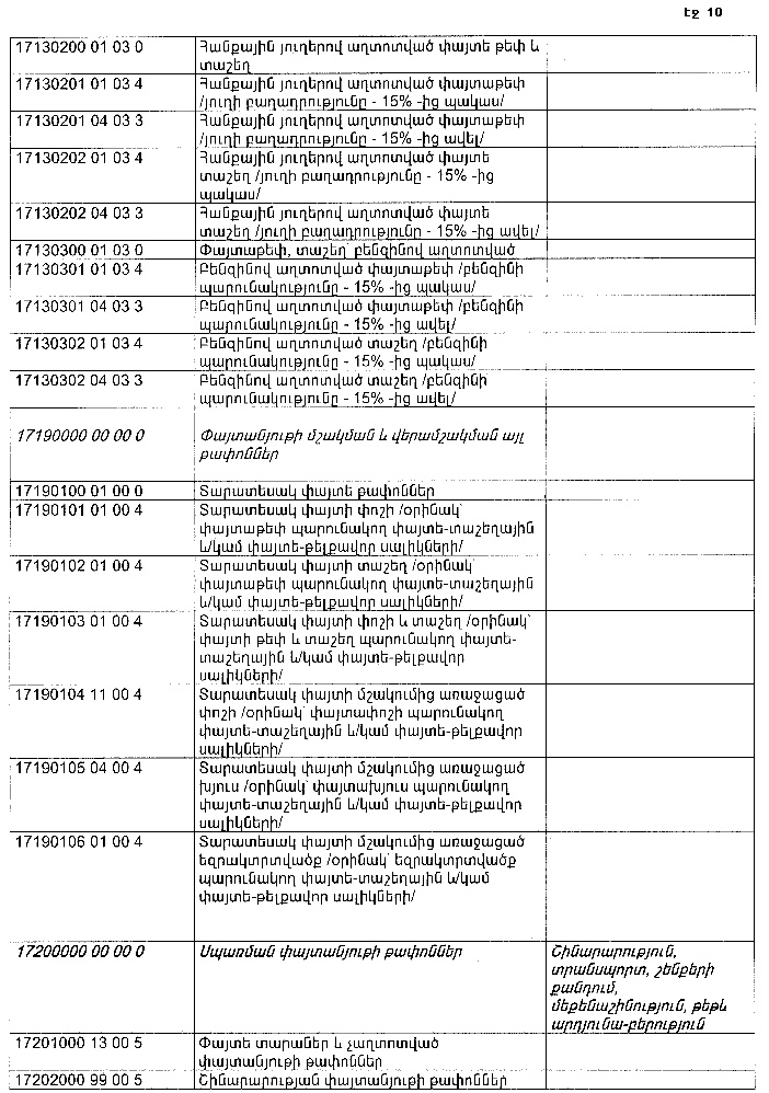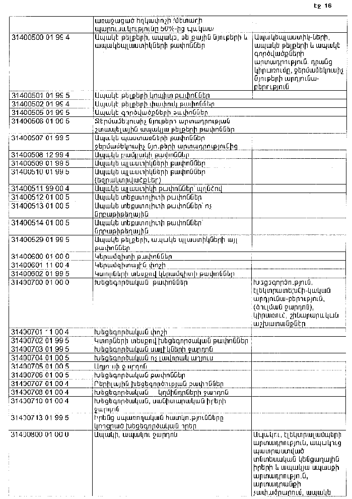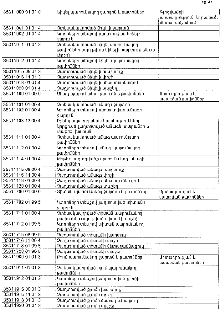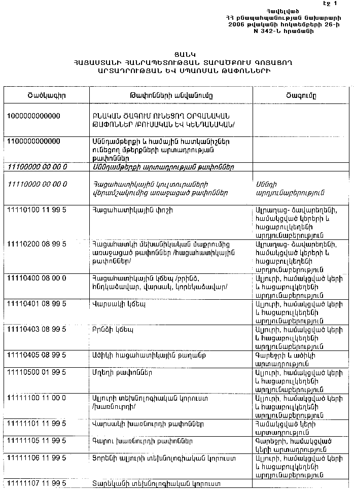 ՀԱՅԱՍՏԱՆԻ ՀԱՆՐԱՊԵՏՈՒԹՅԱՆ ՏԱՐԱԾՔՈՒՄ ԳՈՅԱՑՈՂ ԱՐՏԱԴՐՈՒԹՅԱՆ (ԱՅԴ ԹՎՈՒՄ` ԸՆԴԵՐՔՕԳՏԱԳՈՐԾՄԱՆ) ԵՎ ՍՊԱՌՄԱՆ ԹԱՓՈՆՆԵՐԻ ՑԱՆԿԸ ՀԱՍՏԱՏԵԼՈՒ ՄԱՍԻՆ