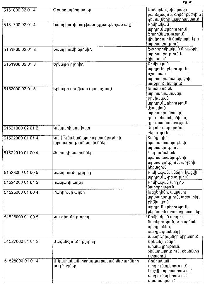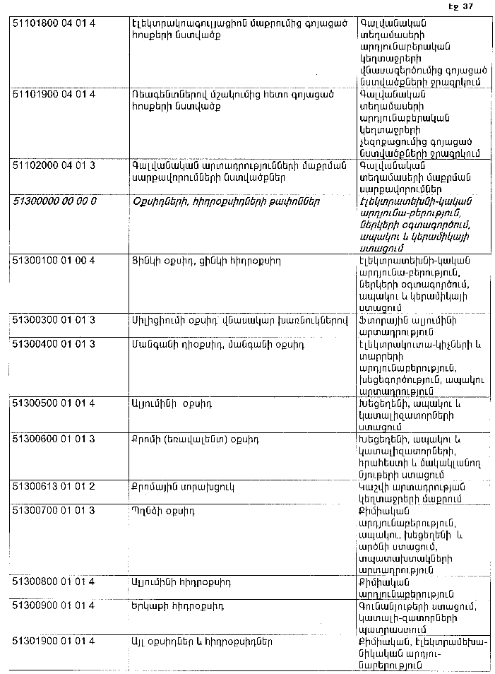 Ղեկավարվելով Հայաստանի Հանրապետության կառավարության 2004 թվականի մայիսի 20-ի «Հայաստանի Հանրապետության վտանգավոր թափոնների ցանկը հաստատելու մասին» N 874-Ն որոշման 2-րդ կետով.