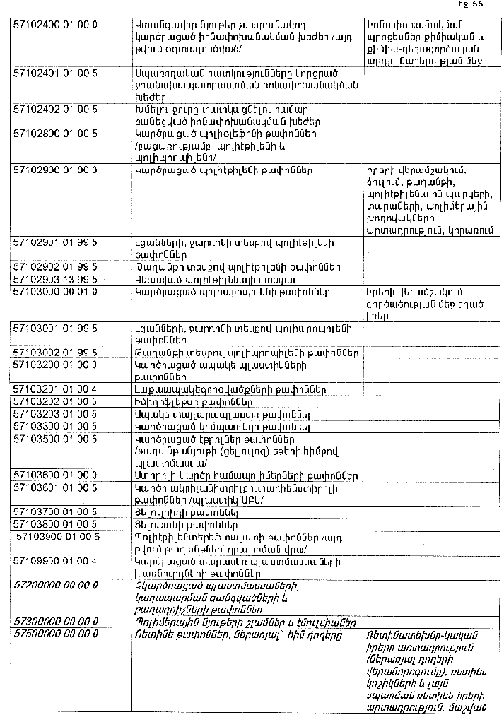 ՀԱՅԱՍՏԱՆԻ ՀԱՆՐԱՊԵՏՈՒԹՅԱՆ ՏԱՐԱԾՔՈՒՄ ԳՈՅԱՑՈՂ ԱՐՏԱԴՐՈՒԹՅԱՆ (ԱՅԴ ԹՎՈՒՄ` ԸՆԴԵՐՔՕԳՏԱԳՈՐԾՄԱՆ) ԵՎ ՍՊԱՌՄԱՆ ԹԱՓՈՆՆԵՐԻ(վերնագիրը փոփ. 20.08.15 N 244-Ն)