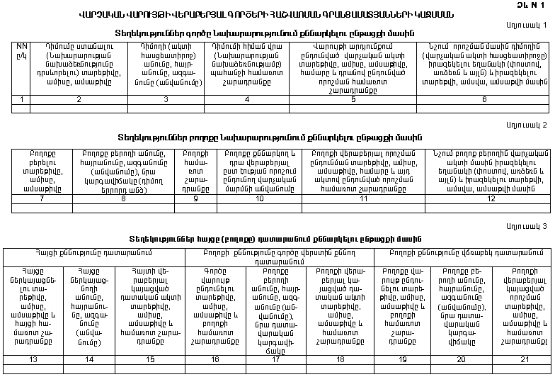 1. Վարչական վարույթի վերաբերյալ գործերի հաշվառման N 1 գրանցամատյան,