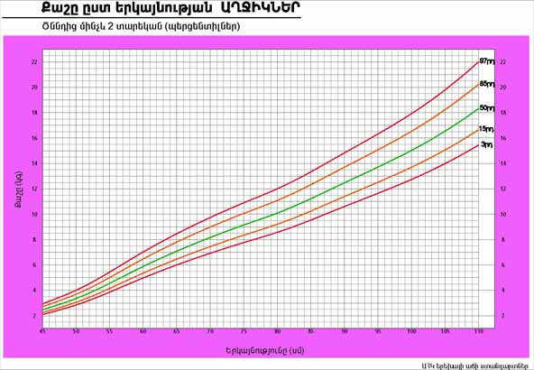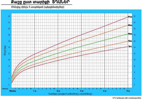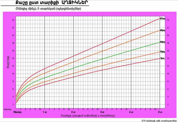 | Քաշը ըստ տարիքի ԱՂՋԻԿՆԵՐ | Ծննդից մինչև 5 տարեկան (պերցենտիլներ) |