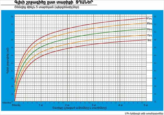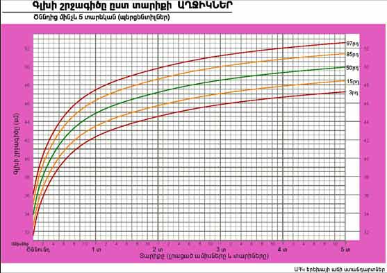| Գլխի շրջագիծը ըստ տարիքի ԱՂՋԻԿՆԵՐ | Ծննդից մինչև 5 տարեկան (պերցենտիլներ) |