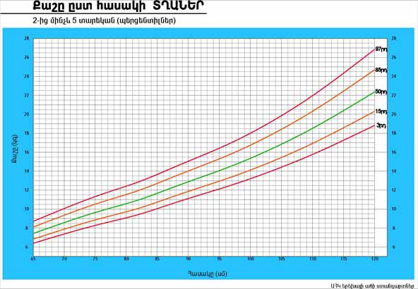 | Քաշը ըստ հասակի ԱՂՋԻԿՆԵՐ | 2-ից 5 տարեկան (պերցենտիլներ) |