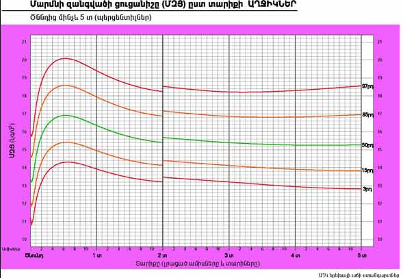 | Մարմնի զանգվածի ցուցանիշը (ՄԶՑ) ըստ տարիքի ԱՂՋԻԿՆԵՐ | Ծննդից մինչև 5 տ (պերցենտիլներ) |