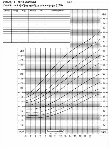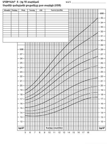 | Մարմնի զանգվածի ցուցանիշը ըստ տարիքի (ՄԶՑ) | ԱՂՋԻԿՆԵՐ 5-ից 18 տարեկան |