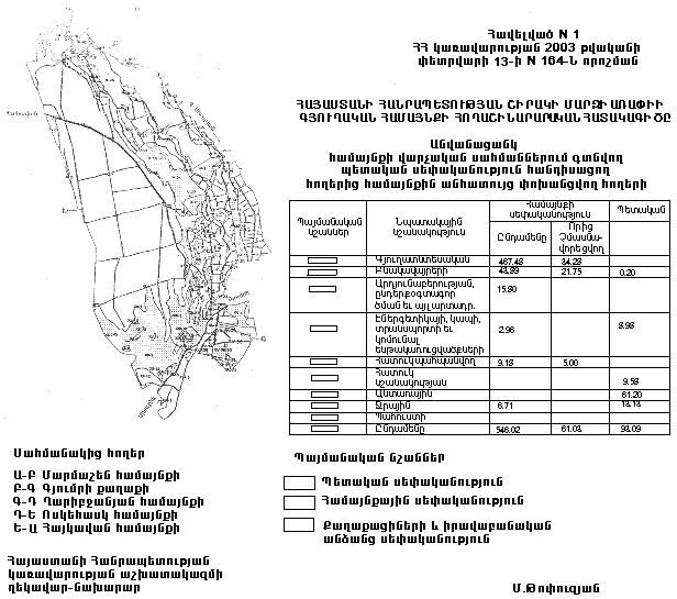 Հավելված N 2 ՀՀ կառավարության 2003 թվականիփետրվարի 13-ի N 164-Ն որոշման |