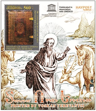 2. Գործողության մեջ դնել` Կրոն. Հայերեն առաջին Աստվածաշնչի` Ոսկան Երևանցու տպագրությամբ` 350-ամյակը (1666թ.) թեմային նվիրված «ՏՊԱԳՐԻՉԸ` ՈՍԿԱՆ ԵՐԵՎԱՆՑԻ. PRINTED BY VOSKAN YEREVANTSI. ԱՍՏՎԱԾԱՇՆՉԻ ԱՌԱՋԻՆ ՀԱՅԵՐԵՆ ՏՊԱԳՐՈՒԹՅԱՆ 350-ԱՄՅԱԿԸ. 350 TH ANNIVERSARY OF THE FIRST PRINTED BIBLIE IN ARMENIAN» 1 նամականիշով գեղաթերթիկը, սահմանելով անվանագինը` 560 դրամ, տպաքանակը` 20 000 հատ: