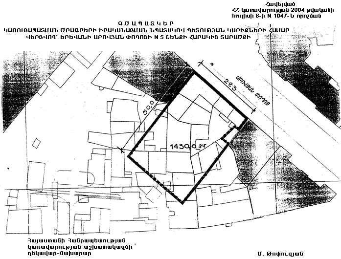 ԿԱՌՈՒՑԱՊԱՏՄԱՆ ԾՐԱԳՐԵՐԻ ԻՐԱԿԱՆԱՑՄԱՆ ՆՊԱՏԱԿՈՎ ՊԵՏՈՒԹՅԱՆ ԿԱՐԻՔՆԵՐԻ ՀԱՄԱՐ ՎԵՐՑՎՈՂ` ԵՐԵՎԱՆԻ ԱԲՈՎՅԱՆ ՓՈՂՈՑԻ N 5 ՇԵՆՔԻ ՀԱՐԱԿԻՑ ՏԱՐԱԾՔԻ