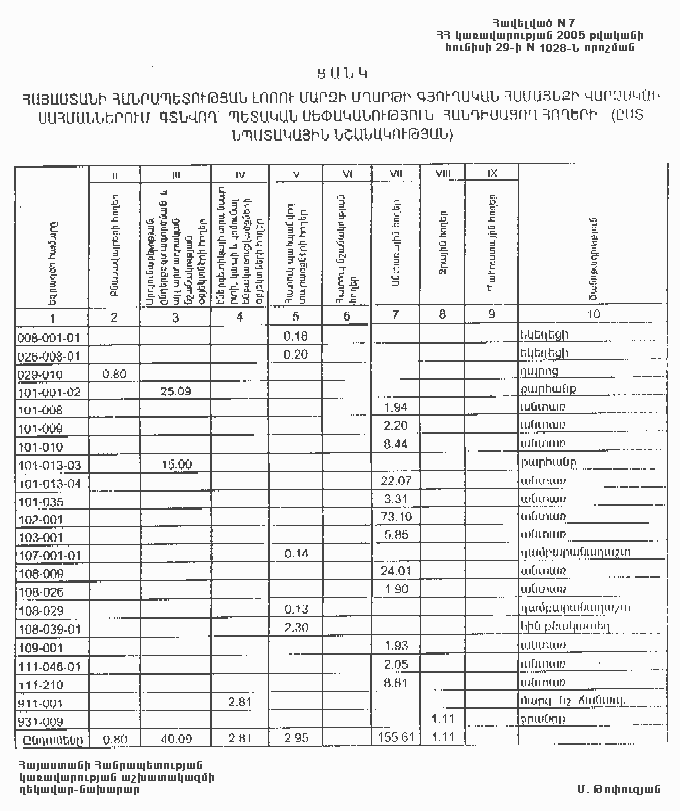 ՀԱՅԱՍՏԱՆԻ ՀԱՆՐԱՊԵՏՈՒԹՅԱՆ ԼՈՌՈՒ ՄԱՐԶԻ ՄՂԱՐԹԻ ԳՅՈՒՂԱԿԱՆ ՀԱՄԱՅՆՔԻ ՎԱՐՉԱԿԱՆ ՍԱՀՄԱՆՆԵՐՈՒՄ ԳՏՆՎՈՂ` ՊԵՏԱԿԱՆ ՍԵՓԱԿԱՆՈՒԹՅՈՒՆ ՀԱՆԴԻՍԱՑՈՂ ՀՈՂԵՐԻՑ ՄՂԱՐԹԻ ԳՅՈՒՂԱԿԱՆ ՀԱՄԱՅՆՔԻՆ ԱՆՀԱՏՈՒՅՑ ՓՈԽԱՆՑՎՈՂ ՀՈՂԵՐԻ (ԸՍՏ ՆՊԱՏԱԿԱՅԻՆ ՆՇԱՆԱԿՈՒԹՅԱՆ)