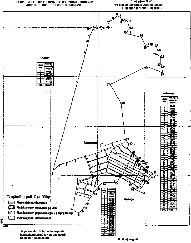 45) Նորավանի գյուղական համայնքի վարչական սահմանների նկարագիրը՝ համաձայն NN 45 և 451 հավելվածների,