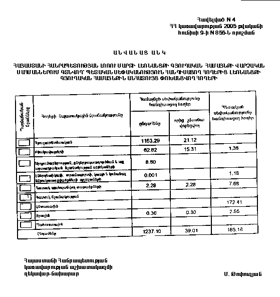 4. Ընդունել ի գիտություն Հայաստանի Հանրապետության Լոռու մարզի Լեռնանցքի գյուղական համայնքի հողային ֆոնդի առկայության և բաշխման մասին հաշվետվությունը` 2005 թվականի հունվարի 1-ի դրությամբ` համաձայն NN 8 և 9 հավելվածների:
