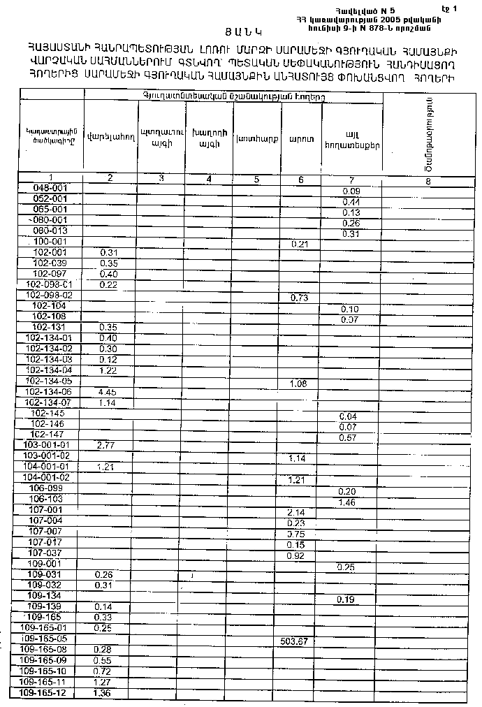 ՀԱՅԱՍՏԱՆԻ ՀԱՆՐԱՊԵՏՈՒԹՅԱՆ ԼՈՌՈՒ ՄԱՐԶԻ ՍԱՐԱՄԵՋԻ ԳՅՈՒՂԱԿԱՆ ՀԱՄԱՅՆՔԻ ՎԱՐՉԱԿԱՆ ՍԱՀՄԱՆՆԵՐՈՒՄ ԳՏՆՎՈՂ` ՊԵՏԱԿԱՆ ՍԵՓԱԿԱՆՈՒԹՅՈՒՆ ՀԱՆԴԻՍԱՑՈՂ ՀՈՂԵՐԻՑ ՍԱՐԱՄԵՋԻ ԳՅՈՒՂԱԿԱՆ ՀԱՄԱՅՆՔԻՆ ԱՆՀԱՏՈՒՅՑ ՓՈԽԱՆՑՎՈՂ ՀՈՂԵՐԻ (ԸՍՏ ՆՊԱՏԱԿԱՅԻՆ ՆՇԱՆԱԿՈՒԹՅԱՆ)