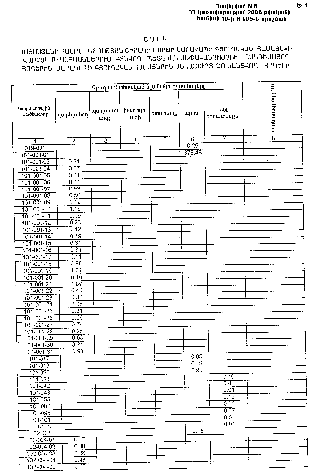 16 հունիսի 2005 թվականի N 905-Ն