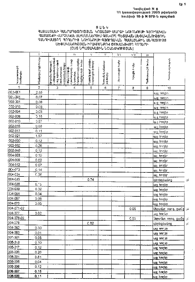4. Ընդունել ի գիտություն Հայաստանի Հանրապետության Կոտայքի մարզի Նուռնուսի գյուղական համայնքի հողային ֆոնդի առկայության և բաշխման մասին հաշվետվությունը՝ 2005 թվականի հունվարի 1-ի դրությամբ՝ համաձայն NN 8 և 9 հավելվածների: