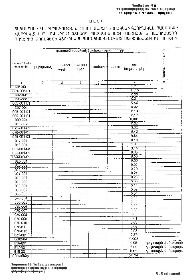4. Ընդունել ի գիտություն Հայաստանի Հանրապետության Լոռու մարզի Ձորագետի գյուղական համայնքի հողային ֆոնդի առկայության և բաշխման մասին հաշվետվությունը` 2005 թվականի հունվարի 1-ի դրությամբ` համաձայն N 8 հավելվածի: