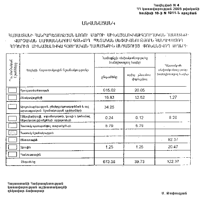 4. Ընդունել ի գիտություն Հայաստանի Հանրապետության Լոռու մարզի Միխայելովկայի գյուղական համայնքի հողային ֆոնդի առկայության և բաշխման մասին հաշվետվությունը` 2005 թվականի հունվարի 1-ի դրությամբ` համաձայն N 8 հավելվածի: