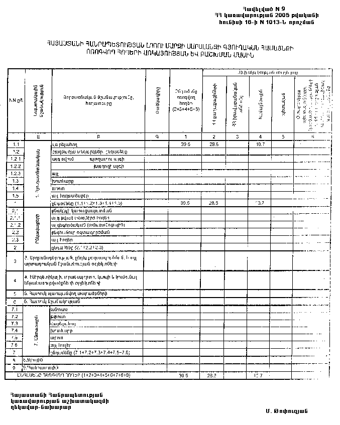 16 հունիսի 2005 թվականի N 1013-Ն