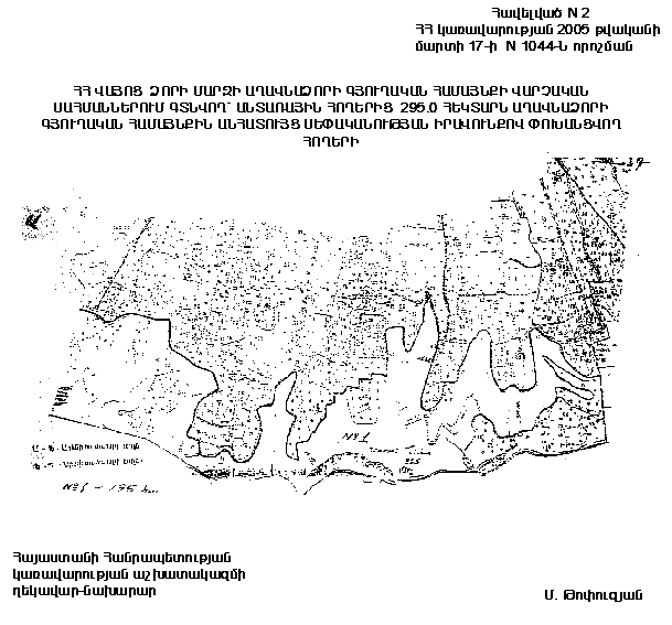 ՀՀ ՎԱՅՈՑ ՁՈՐԻ ՄԱՐԶԻ ԱՂԱՎՆԱՁՈՐԻ ԳՅՈՒՂԱԿԱՆ ՀԱՄԱՅՆՔԻ ՎԱՐՉԱԿԱՆ ՍԱՀՄԱՆՆԵՐՈՒՄ ԳՏՆՎՈՂ` ԱՆՏԱՌԱՅԻՆ ՀՈՂԵՐԻՑ 295.0 ՀԵԿՏԱՐՆ ԱՂԱՎՆԱՁՈՐԻ ԳՅՈՒՂԱԿԱՆ ՀԱՄԱՅՆՔԻՆ ԱՆՀԱՏՈՒՅՑ ՍԵՓԱԿԱՆՈՒԹՅԱՆ ԻՐԱՎՈՒՆՔՈՎ ՓՈԽԱՆՑՎՈՂ ՀՈՂԵՐԻ |