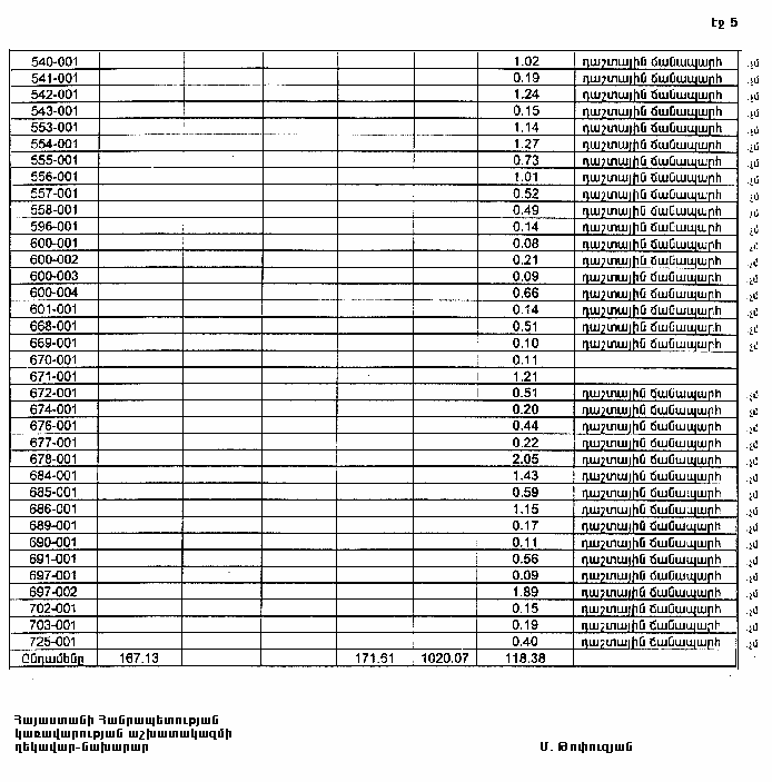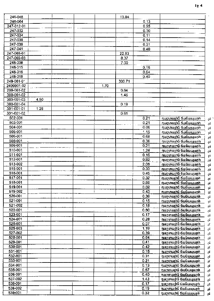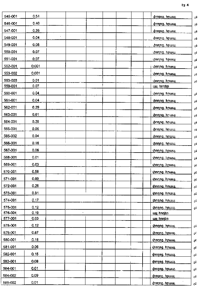 4. Ընդունել ի գիտություն Հայաստանի Հանրապետության Կոտայքի մարզի Արագյուղի գյուղական համայնքի հողային ֆոնդի առկայության և բաշխման մասին հաշվետվությունը՝ 2005 թվականի հունվարի 1-ի դրությամբ՝ համաձայն NN 8 և 9 հավելվածների:
