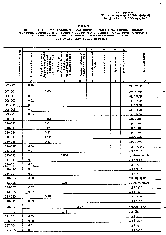 7 հուլիսի 2005 թվականի N 1182-Ն