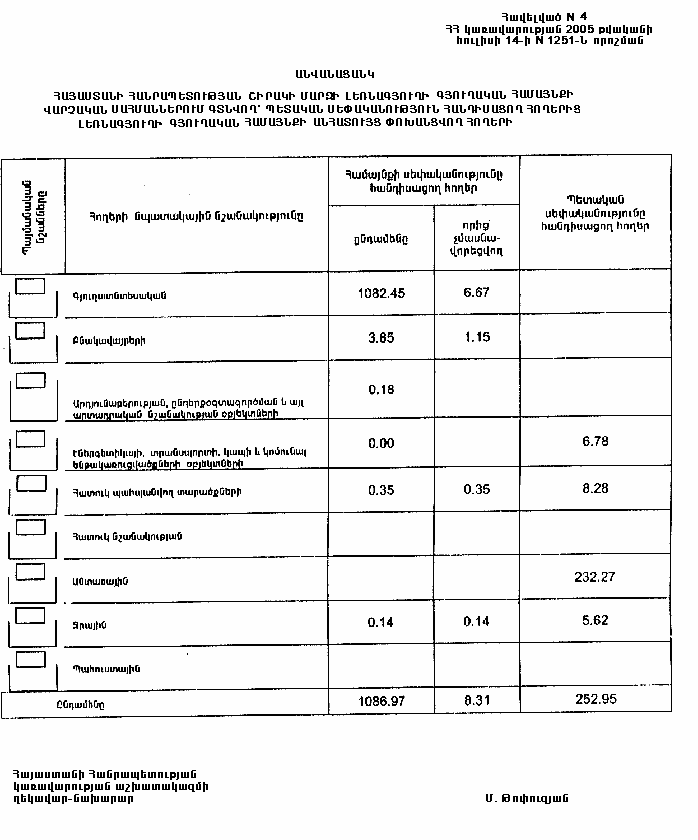 ՀԱՄԱՅՆՔԻ ՎԱՐՉԱԿԱՆ ՍԱՀՄԱՆՆԵՐՈՒՄ ԳՏՆՎՈՂ` ՊԵՏԱԿԱՆ ՍԵՓԱԿԱՆՈՒԹՅՈՒՆ ՀԱՆԴԻՍԱՑՈՂ ՀՈՂԵՐԻՑ ԼԵՌՆԱԳՅՈՒՂԻ ԳՅՈՒՂԱԿԱՆ ՀԱՄԱՅՆՔԻՆ ԱՆՀԱՏՈՒՅՑ ՓՈԽԱՆՑՎՈՂ ՀՈՂԵՐԻ (ԸՍՏ ՆՊԱՏԱԿԱՅԻՆ ՆՇԱՆԱԿՈՒԹՅԱՆ)