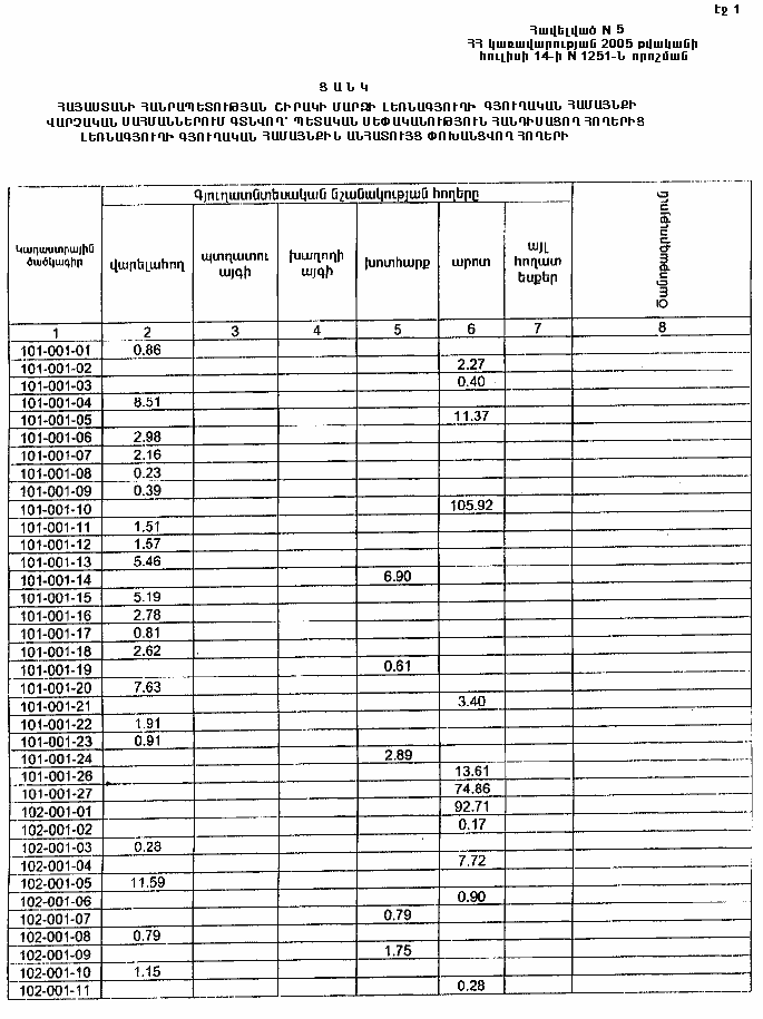 ՀԱՅԱՍՏԱՆԻ ՀԱՆՐԱՊԵՏՈՒԹՅԱՆ ՇԻՐԱԿԻ ՄԱՐԶԻ ԼԵՌՆԱԳՅՈՒՂԻ ԳՅՈՒՂԱԿԱՆ ՀԱՄԱՅՆՔԻ ՎԱՐՉԱԿԱՆ ՍԱՀՄԱՆՆԵՐՈՒՄ ԳՏՆՎՈՂ` ՊԵՏԱԿԱՆ ՍԵՓԱԿԱՆՈՒԹՅՈՒՆ ՀԱՆԴԻՍԱՑՈՂ ՀՈՂԵՐԻ (ԸՍՏ ՆՊԱՏԱԿԱՅԻՆ ՆՇԱՆԱԿՈՒԹՅԱՆ)