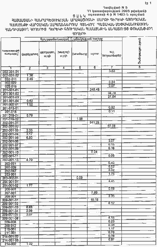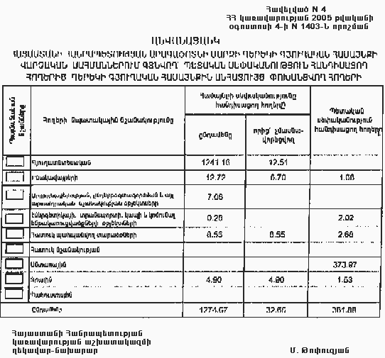 4 օգոստոսի 2005 թվականի N 1403-Ն