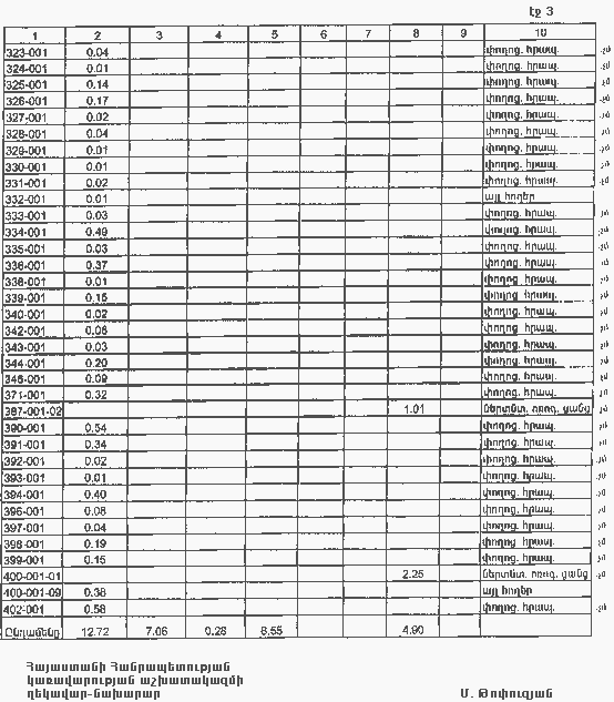 | Հայաստանի Հանրապետության կառավարության աշխատակազմի ղեկավար-նախարար | Մ. Թոփուզյան |