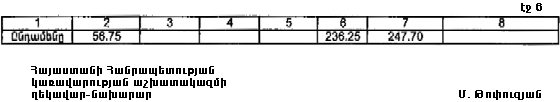 6. Թույլատրել Հայաստանի Հանրապետության կառավարությանն առընթեր անշարժ գույքի կադաստրի պետական կոմիտեի նախագահին Հայաստանի Հանրապետության պետական գեոդեզիական ցանցի հավասարակշռման արդյունքների հիման վրա Հայաստանի Հանրապետության վարչատարածքային միավորների սահմանանիշերի կոորդինատների ժողովածուի հրատարակումից հետո հողային ֆոնդի ընթացիկ հաշվառման ժամանակ Հայաստանի Հանրապետության Արագածոտնի մարզի Ղազարավանի գյուղական համայնքի հողային հաշվեկշռում սահմանված կարգով կատարել համապատասխան փոփոխություններ: