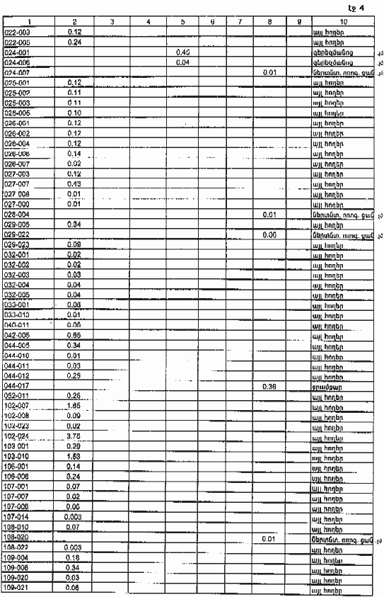 4. Ընդունել ի գիտություն Հայաստանի Հանրապետության Արագածոտնի մարզի Ղազարավանի գյուղական համայնքի հողային ֆոնդի առկայության և բաշխման մասին հաշվետվությունը՝ 2005 թվականի հունվարի 1-ի դրությամբ՝ համաձայն NN 8 և 9 հավելվածների: