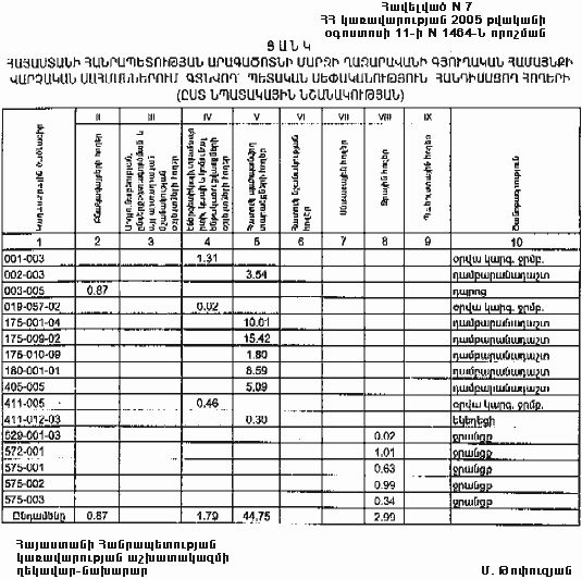 11 օգոստոսի 2005 թվականի N 1464-Ն