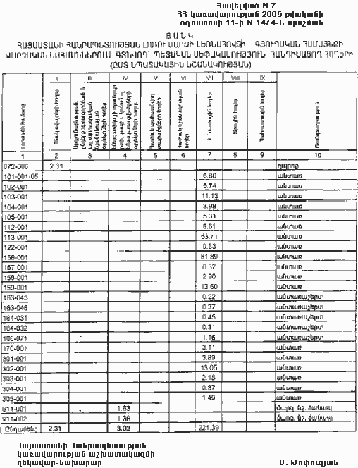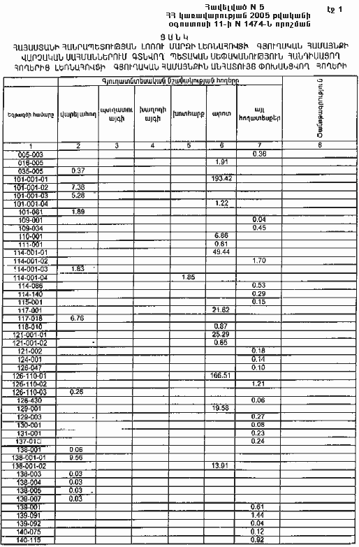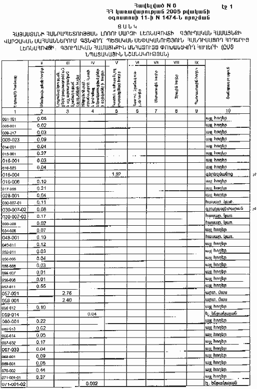 11 օգոստոսի 2005 թվականի N 1474-Ն