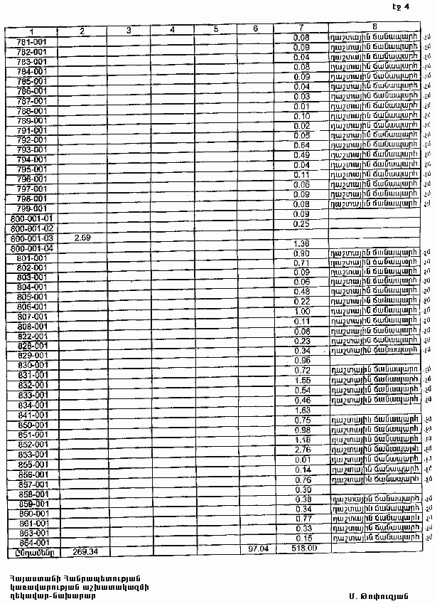 4. Ընդունել ի գիտություն Հայաստանի Հանրապետության Սյունիքի մարզի Սյունիքի գյուղական համայնքի հողային ֆոնդի առկայության և բաշխման մասին հաշվետվությունը` 2005 թվականի հունվարի 1-ի դրությամբ` համաձայն NN 8 և 9 հավելվածների: