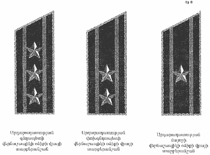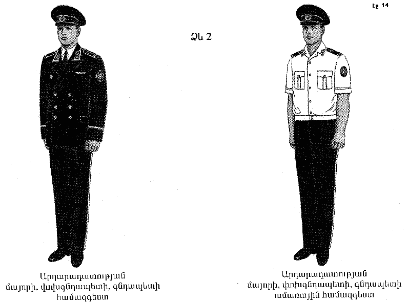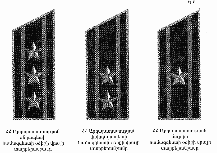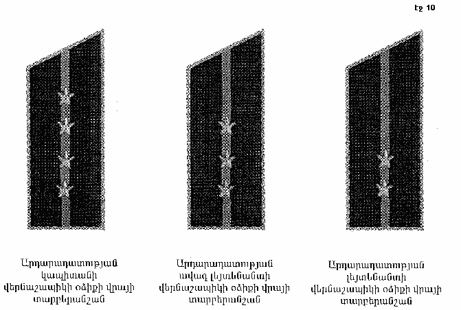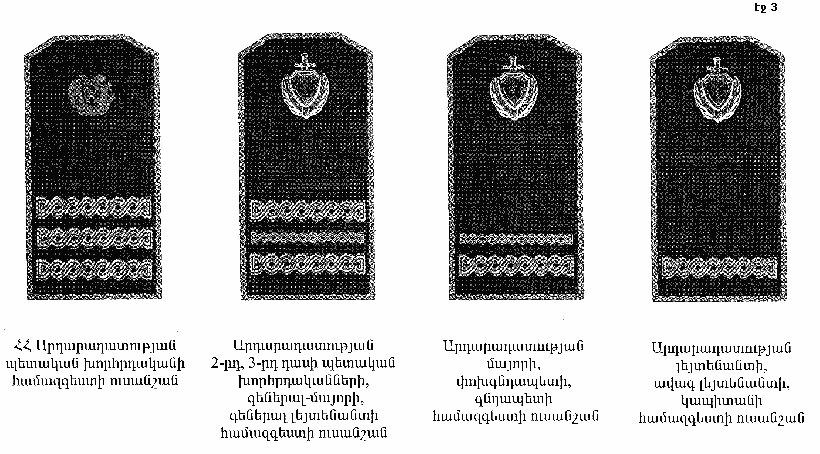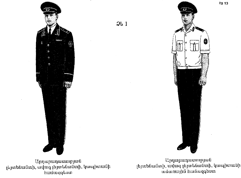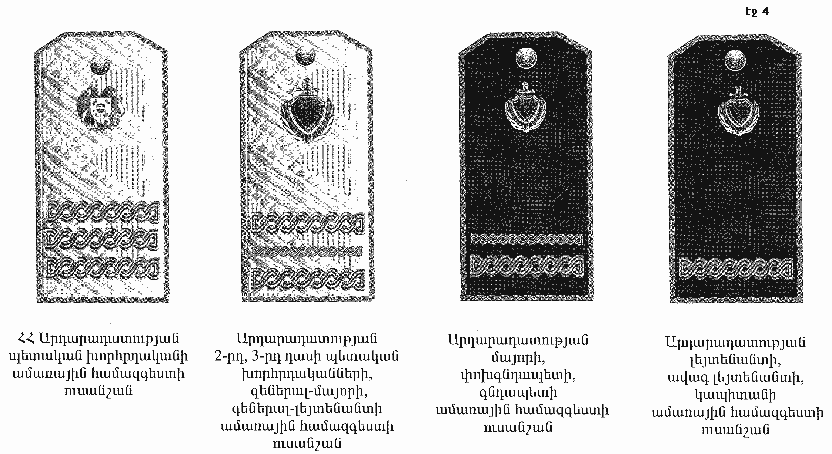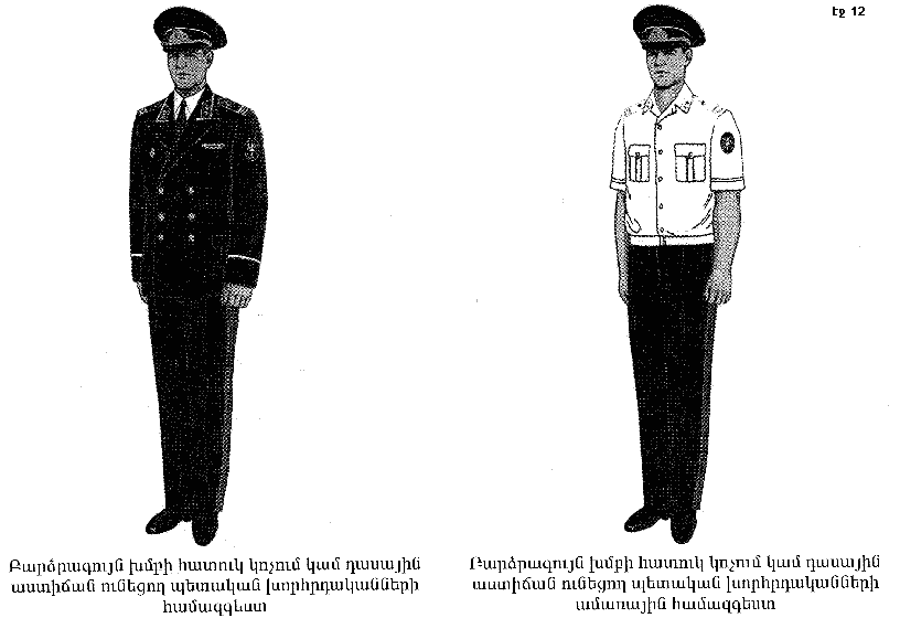 1.7 Ուսանշանները և հատուկ կոչման կամ դասային աստիճանի տարբերանշանները կրում են վերնաշապիկի, բաճկոնի, կիսավերարկուի և վերարկուի վրա: