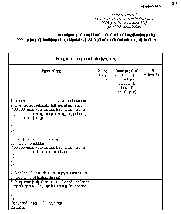2. Հաստատել ֆինանսական հաշվետվությունների ձևերը (հավելված 2):