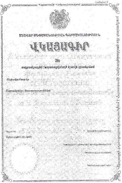7) «Գրանցված է պետական գրանցամատյանում» բառերից հետո նշվում է փաստացի գրանցման թվականը: