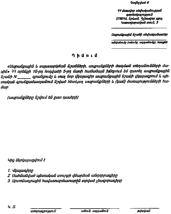 6) «առաջին օգտագործման թվականը» բառերից հետո նշվում է առաջին օգտագործման թվականը (24).