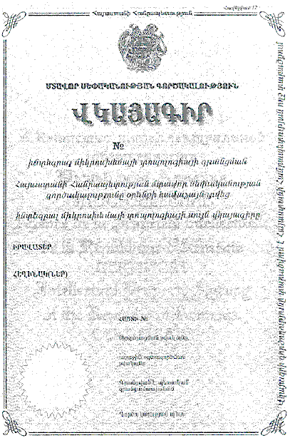 127. Ինտեգրալ միկրոսխեմայի (ԻՄՏ) վկայագրի ձևաթուղթը (հավելված 12) լրացվում է բաժնի կողմից՝ գրանցամատյանի տվյալների հիման վրա և ստորագրվում է գործակալության պետի կողմից: Գործակալության պետի ստորագրությունը հաստատվում է գործակալության կնիքով։