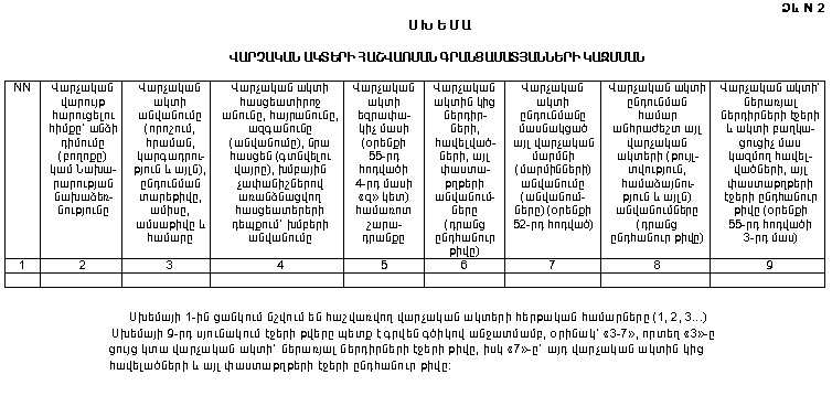 ՎԱՐՉԱԿԱՆ ՎԱՐՈՒՅԹԻ ՎԵՐԱԲԵՐՅԱԼ ԳՈՐԾԵՐԻ, ԴՐԱՆՑ ՀԱՇՎԱՌՄԱՆ ԳՐԱՆՑԱՄԱՏՅԱՆՆԵՐԻ ԵՎ ՎԱՐՉԱԿԱՆ ԱԿՏԵՐԻ ՀԱՇՎԱՌՄԱՆ ԳՐԱՆՑԱՄԱՏՅԱՆՆԵՐԻ ՎԱՐՄԱՆ ԿԱՐԳՆ ՈԻ ՊԱՅՄԱՆՆԵՐԸ ՍԱՀՄԱՆՈՂ