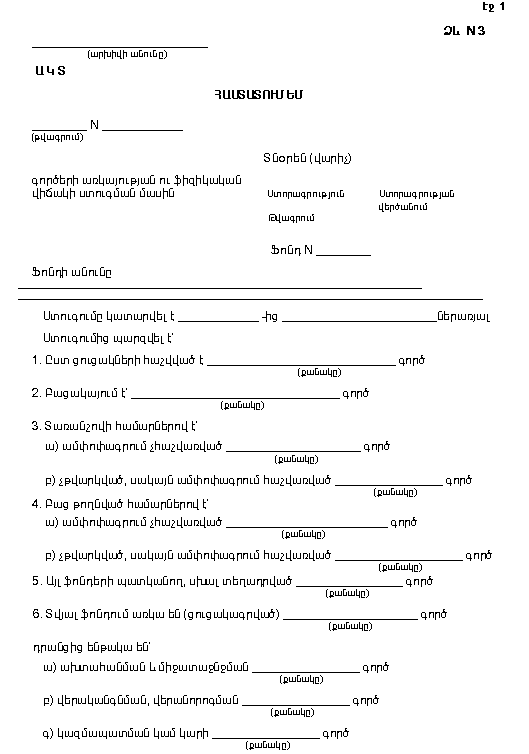 15. Փաստաթղթերի առկայության և պահպանվածության վիճակի ստուգման ընթացքում՝