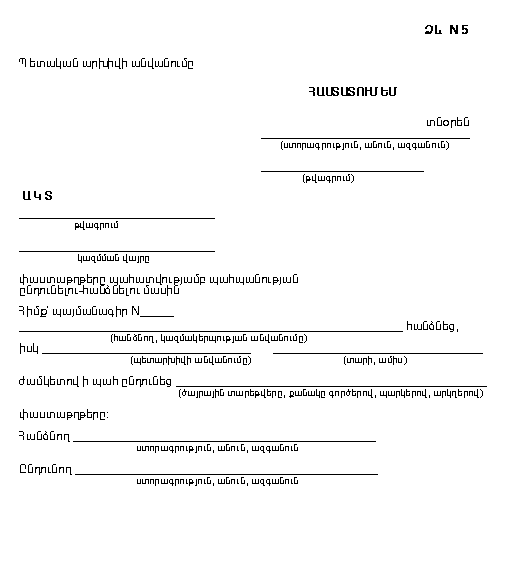 «Արխիվային գործի մասին» Հայաստանի Հանրապետության օրենքի 5-րդ հոդվածի պահանջին համապատասխան