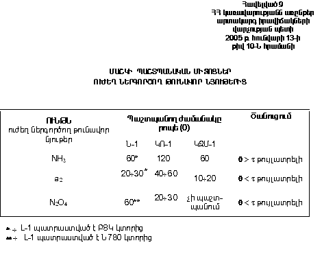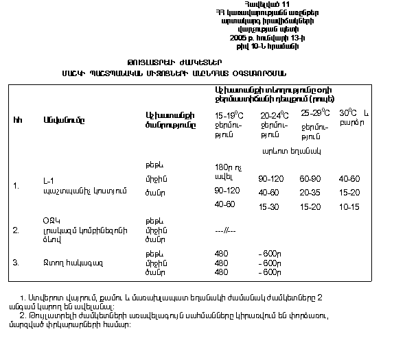 202. Մաշկի և շնչառական օրգանների անհատական պաշտպանական միջոցներով անընդհատ աշխատելու թույլատրելի տևողությունը բերված է Հավելված 11-ում (կցված է):