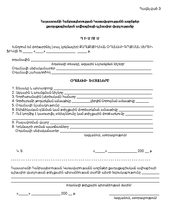 ՔԱՂԱՔԱՑԻԱԿԱՆ ՕԴԱՆԱՎԻ ԳՐԱՆՑՄԱՆ ՍԵՐՏԻՖԻԿԱՏ