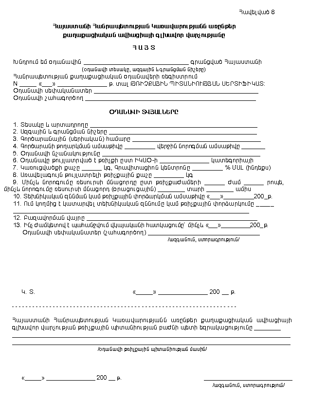ա) օդանավի սեփականատիրոջ կամ շահագործողի հայտի (Հավելված 8)