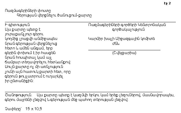 ՓՈՍՏԱՅԻՆ ՔԱՐՏ ԵՎ ՆԱՄԱԿ
