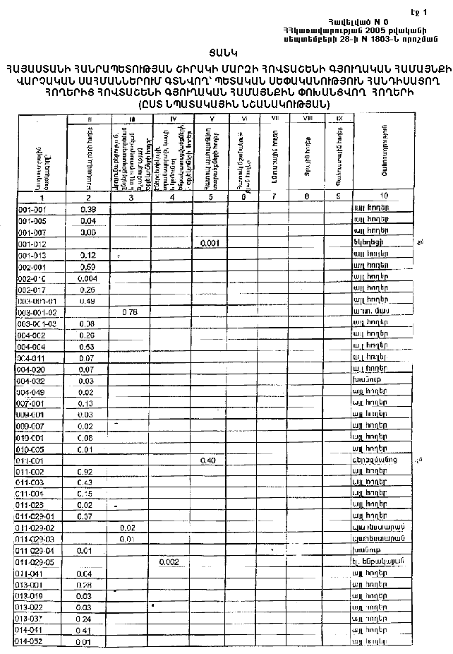 ՀԱՅԱՍՏԱՆԻ ՀԱՆՐԱՊԵՏՈՒԹՅԱՆ ՇԻՐԱԿԻ ՄԱՐԶԻ ՀՈՎՏԱՇԵՆԻ ԳՅՈՒՂԱԿԱՆ ՀԱՄԱՅՆՔԻ ՎԱՐՉԱԿԱՆ ՍԱՀՄԱՆՆԵՐՈՒՄ ԳՏՆՎՈՂ` ՊԵՏԱԿԱՆ ՍԵՓԱԿԱՆՈՒԹՅՈՒՆ ՀԱՆԴԻՍԱՑՈՂ ՀՈՂԵՐԻՑ ՀՈՎՏԱՇԵՆԻ ԳՅՈՒՂԱԿԱՆ ՀԱՄԱՅՆՔԻՆ ԱՆՀԱՏՈՒՅՑ ՓՈԽԱՆՑՎՈՂ ՀՈՂԵՐԻ (ԸՍՏ ՆՊԱՏԱԿԱՅԻՆ ՆՇԱՆԱԿՈՒԹՅԱՆ)