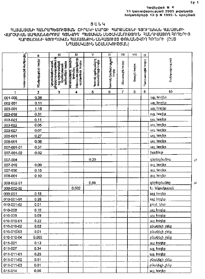 ՀԱՅԱՍՏԱՆԻ ՀԱՆՐԱՊԵՏՈՒԹՅԱՆ ՇԻՐԱԿԻ ՄԱՐԶԻ ՀԱՐԹԱՇԵՆԻ ԳՅՈՒՂԱԿԱՆ ՀԱՄԱՅՆՔԻ ՎԱՐՉԱԿԱՆ ՍԱՀՄԱՆՆԵՐՈՒՄ ԳՏՆՎՈՂ` ՊԵՏԱԿԱՆ ՍԵՓԱԿԱՆՈՒԹՅՈՒՆ ՀԱՆԴԻՍԱՑՈՂ ՀՈՂԵՐԻՑ ՀԱՐԹԱՇԵՆԻ ԳՅՈՒՂԱԿԱՆ ՀԱՄԱՅՆՔԻՆ ԱՆՀԱՏՈՒՅՑ ՓՈԽԱՆՑՎՈՂ ՀՈՂԵՐԻ | |
