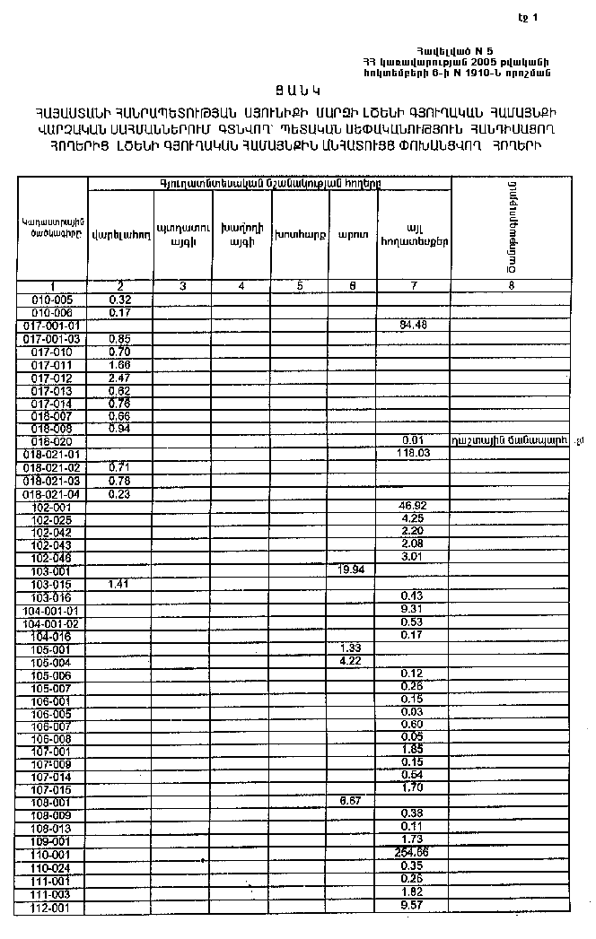 ՀԱՅԱՍՏԱՆԻ ՀԱՆՐԱՊԵՏՈՒԹՅԱՆ ՍՅՈՒՆԻՔԻ ՄԱՐԶԻ ԼԾԵՆԻ ԳՅՈՒՂԱԿԱՆ ՀԱՄԱՅՆՔԻ ՎԱՐՉԱԿԱՆ ՍԱՀՄԱՆՆԵՐՈՒՄ ԳՏՆՎՈՂ` ՊԵՏԱԿԱՆ ՍԵՓԱԿԱՆՈՒԹՅՈՒՆ ՀԱՆԴԻՍԱՑՈՂ ՀՈՂԵՐԻ (ԸՍՏ ՆՊԱՏԱԿԱՅԻՆ ՆՇԱՆԱԿՈՒԹՅԱՆ) | |