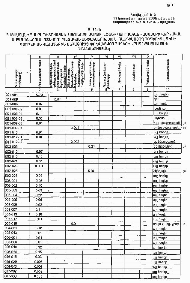 6 հոկտեմբերի 2005 թվականի N 1910-Ն