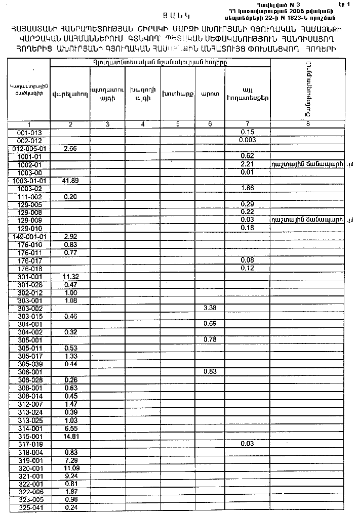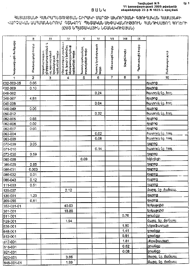 ՀԱՅԱՍՏԱՆԻ ՀԱՆՐԱՊԵՏՈՒԹՅԱՆ ՇԻՐԱԿԻ ՄԱՐԶԻ ԱԽՈՒՐՅԱՆԻ ԳՅՈՒՂԱԿԱՆ ՀԱՄԱՅՆՔԻ ՎԱՐՉԱԿԱՆ ՍԱՀՄԱՆՆԵՐՈՒՄ ԳՏՆՎՈՂ` ՊԵՏԱԿԱՆ ՍԵՓԱԿԱՆՈՒԹՅՈՒՆ ՀԱՆԴԻՍԱՑՈՂ ՀՈՂԵՐԻՑ ԱԽՈՒՐՅԱՆԻ ԳՅՈՒՂԱԿԱՆ ՀԱՄԱՅՆՔԻՆ ԱՆՀԱՏՈՒՅՑ ՓՈԽԱՆՑՎՈՂ ՀՈՂԵՐԻ (ԸՍՏ ՆՊԱՏԱԿԱՅԻՆ ՆՇԱՆԱԿՈՒԹՅԱՆ)